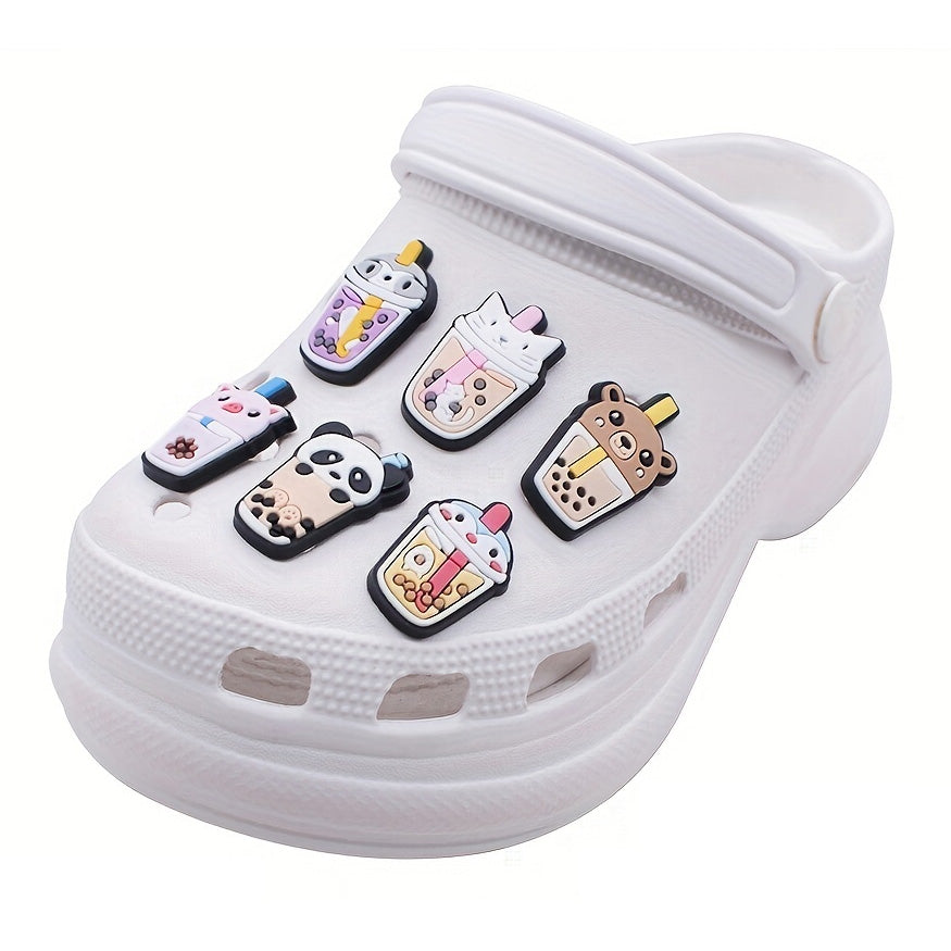 These adorable shoe charms are the perfect way to add a touch of whimsy and personality to your footwear. Each charm features a delightful animal character, from playful pandas to charming cats, all enjoying a refreshing bubble tea. Crafted with attention to detail, these charms capture the fun and sweetness of your favorite animals indulging in their favorite drink. Made from durable and eco-friendly PVC, these shoe charms are designed to withstand the rigors of daily use while maintaining their vibrant colors and intricate designs. They're easy to attach to any shoe with holes, such as Crocs or sandals, making them a versatile accessory for all ages. Whether you're a bubble tea enthusiast, an animal lover, or simply someone who appreciates cute things, these Cute Animal Drinking Bubble Tea Shoe Charms are sure to bring a smile to your face every time you look down at your shoes. So why wait? Add a dash of cuteness to your step today!