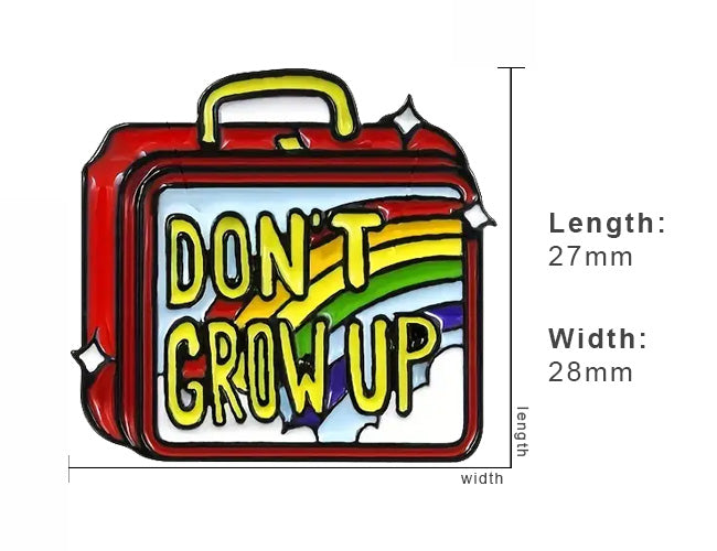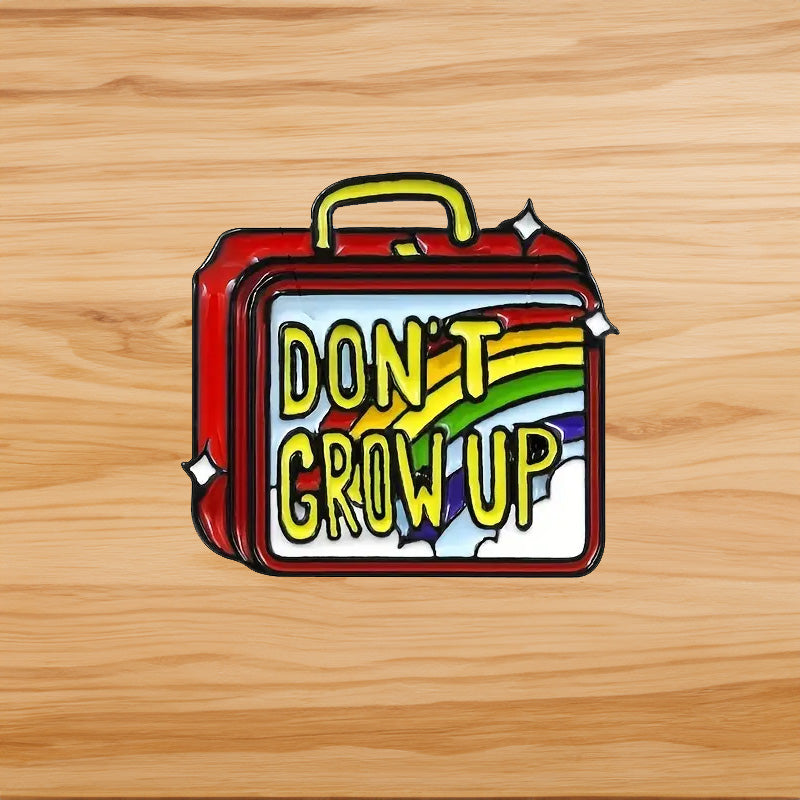 This enchanting pin is a tiny tribute to the days when lunchboxes held secrets, peanut butter sandwiches, and dreams. A miniature lunchbox boasts a colorful enamel rainbow accent. Share the magic with a friend who needs a dose of playfulness. Whether they’re a teacher, an artist, or just someone who believes in fairy tales, the “Don’t Grow Up" Lunchbox pin is a delightful surprise.