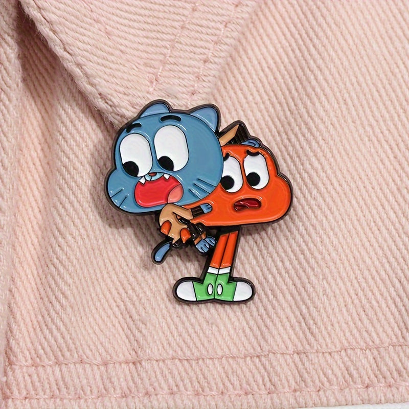 Add a splash of animated charm to your ensemble with our Gumball and Darwin Enamel Pin! This vibrant pin features the inseparable duo, Gumball and Darwin, from the beloved animated series, The Amazing World of Gumball. Crafted with meticulous attention to detail, this pin showcases Gumball and Darwin and capturing their unique personalities and infectious camaraderie. Whether you're a die-hard fan of the series or simply love unique accessories, this pin is a must-have addition to your collection. It's the perfect way to show off your quirky style and love for animation. Bring home the fun and friendship of Gumball and Darwin with this enchanting enamel pin. It's the perfect gift for animation enthusiasts and pin collectors alike.