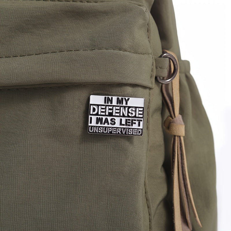 Unleash your mischievous side with our In My Defense I Was Left Unsupervised Enamel Pin. This pin is a humorous tribute to those spontaneous moments when supervision is lacking, and creativity takes over. This pin showcases a bold design featuring the witty phrase that will surely bring a smile to anyone who sees it. Its sturdy construction ensures it remains securely attached to your backpack, denim jacket, or cap, adding a fun twist to any ensemble. Don't wait, add a dash of humor to your style with our "In My Defense I Was Left Unsupervised" Enamel Pin today!