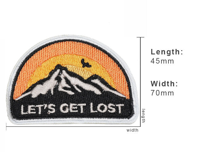 Embrace the spirit of adventure with our "Let's Get Lost" Embroidered Mountains Patch. This beautifully crafted patch features a stunning mountain range design, intricately embroidered with attention to detail. The phrase "Let's Get Lost" is stitched in a bold, inviting font, encouraging the wearer to explore and seek new experiences. The patch is made from high-quality materials, ensuring durability and longevity. Its vibrant colors and exquisite design make it a perfect addition to any backpack, jacket, or hat. Whether you're an avid traveler, a nature lover, or simply someone who appreciates unique accessories, this patch is a must-have.