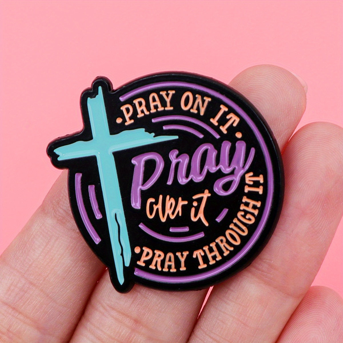 Pray On It, Pray Over It, Pray Through It' Enamel Pin