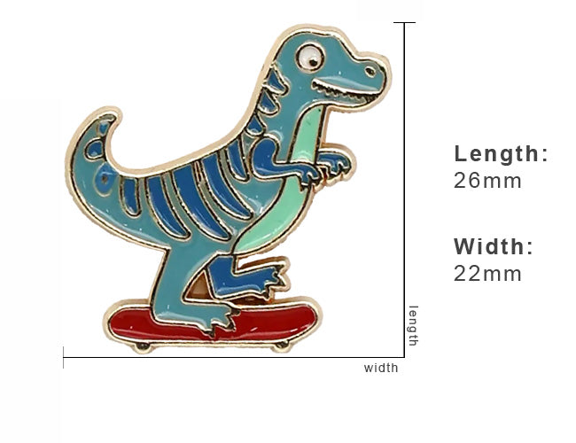 Add some Jurassic fun to your wardrobe with our Skateboard Dinosaur Enamel Pin! This playful pin features a cool dinosaur rocking a skateboard, perfect for showing off your unique style. Don't miss out on this quirky accessory!