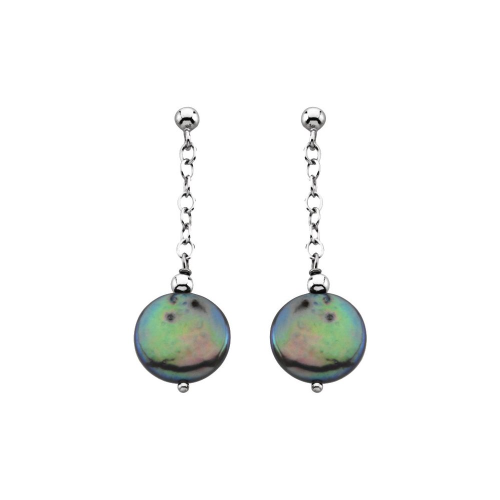 Sterling Silver Cultured Freshwater Black Coin Pearl Earrings