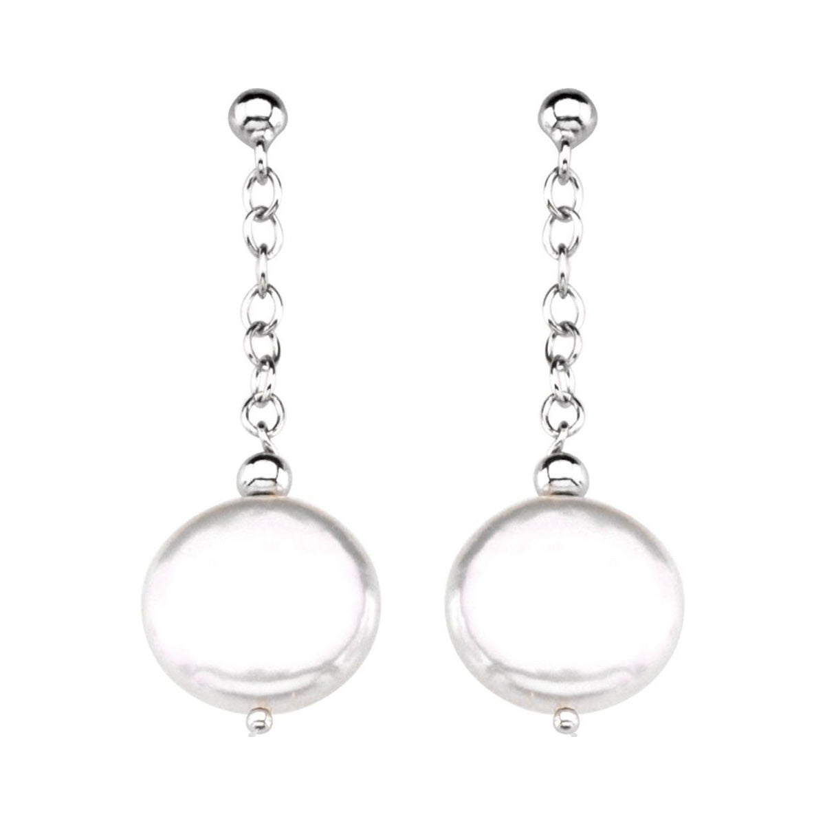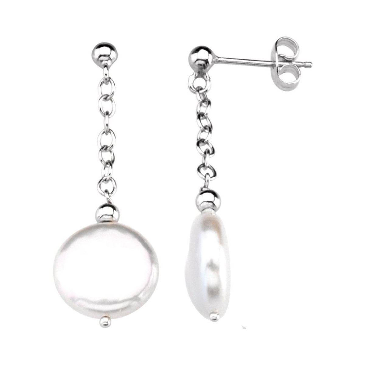 Sterling Silver Cultured White Freshwater Coin Pearl Earrings