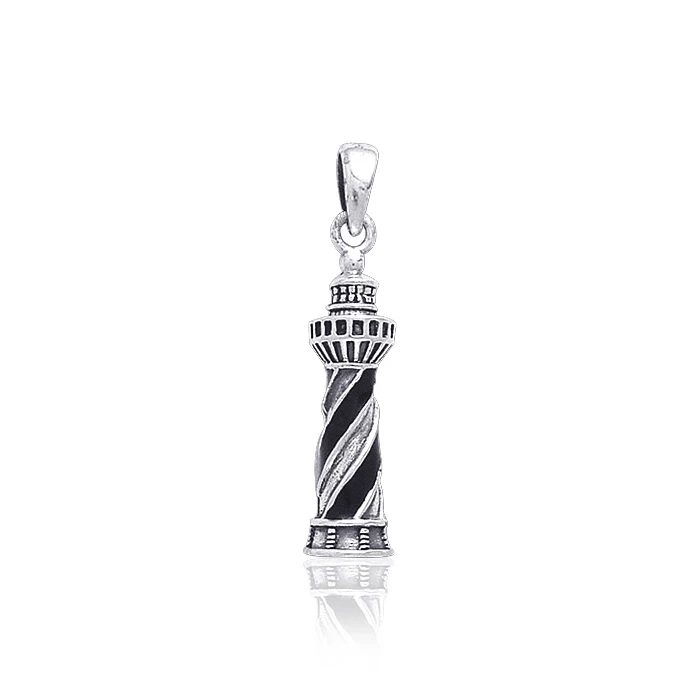 The lighthouse silver pendant has a classic lighthouse design that is sure to remind you of your favorite trips to the shore. Lighthouses are enduring symbols of the seashore, with many still dutifully serving after hundreds of years. This pendant is meticulously crafted from fine sterling silver and is the perfect accessory for anyone who loves the mystique of lighthouses.