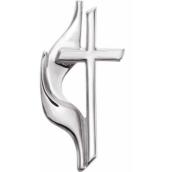 The Cross and flame is the official symbol of the United Methodist Church since 1968. Adopted shortly after the merger of The Methodist Church and the Evangelical United Brethren Church . It relates The United Methodist church to God through Christ (cross) and the Holy Spirit (flame). The flame is a reminder of Pentecost when witnesses were unified by the power of the Holy Spirit and saw "tongues, as of fire" (Acts 2:3). The two tongues of a single flame may also be understood to represent the union of two denominations . The two separate flames represent the Evangelical United Brethren Church and the Methodist Church coming together to form the United Methodist Church.