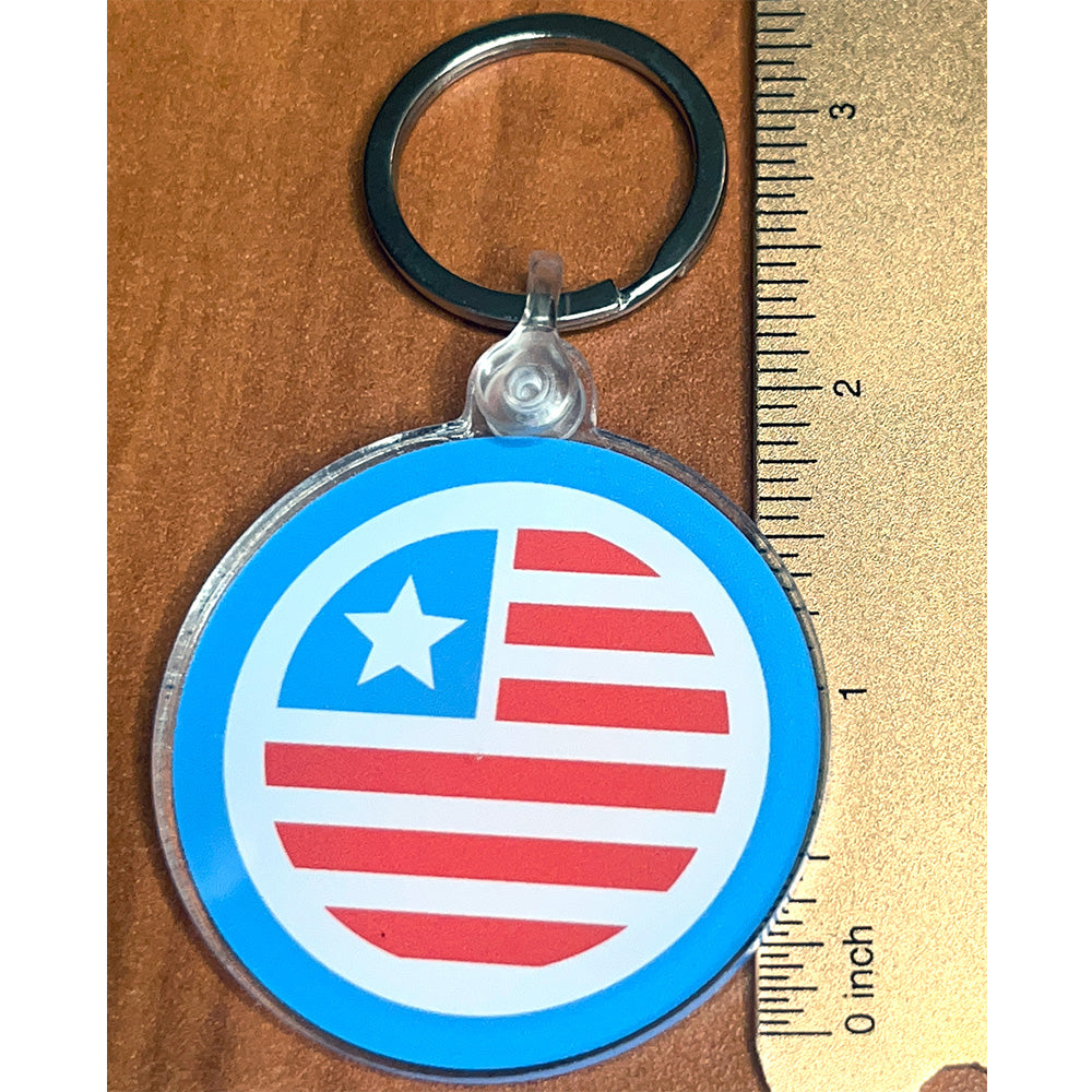 This USA Flag Round Acrylic Key Chain is the perfect accessory for showing your patriotism. Made of durable acrylic material, it features a vibrant flag design that is sure to catch attention. Represent your country wherever you go with this stylish and functional key chain.
