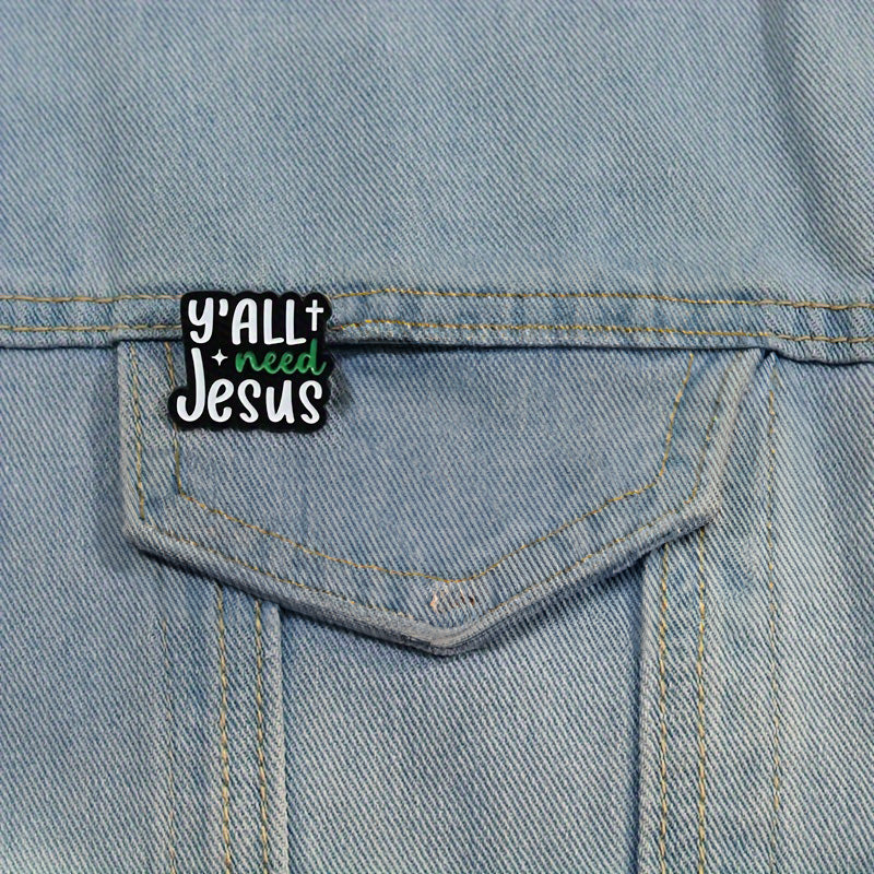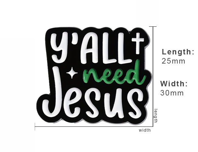 Add a dash of divine intervention to your daily ensemble with our "Y'all Need Jesus" Enamel Pin! This heavenly accessory is not just a pin, it's a statement of faith, humor, and style all rolled into one. Crafted with love and a touch of celestial charm, this pin features a vibrant design that's sure to catch eyes and spark conversations. The bold, enamel-coated surface showcases the playful yet powerful message, "Y'all Need Jesus," reminding us all of the higher power that guides us. Whether you're a believer seeking a fun way to express your faith, or a fashion-forward individual with a penchant for quirky accessories, this pin is a must-have. Embrace the spirit, spread the laughter, and let your style ascend to new heights with the "Y'all Need Jesus" Enamel Pin. It's the perfect blend of sass and sanctity that y'all definitely need!